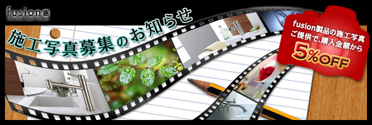 ステンレス水栓金具[fusion]では、製品をご購入くださったお客様の「施工写真」(製品取付後の写真)を募集しております。